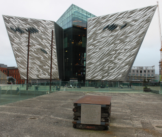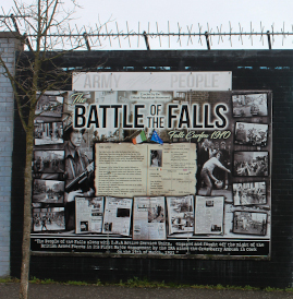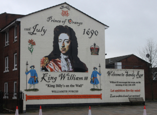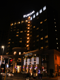 is a mural on part of the wall that separated Protestant and Catholic parts of Belfast. Violence regularly occurred between them and walls were necessary to separate them. Now, people seem to get along better and the mural commemorates some of the Troubles. Below right is the Europa Hotel which was the most bombed hotel in Europe due to the violence between Catholics and Protestants. |