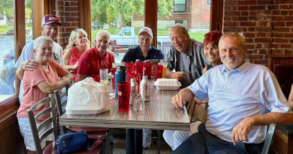 Below left are the Evansville Otterbelles along with mascot, Evan the Otter. The movie, "A League of Their Own" was filmed at Bosse Field and the Otterbelles wear outfits that look like the uniforms worn by the women ballplayers in that era. Below center, I had a great time meeting up with my great friends from college. Below right, I also met up with great friends at the Malloy Conference as well as making new friends there.